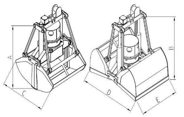 The OUCO electro hydraulic clamshell grab is suitable to handle fine and granular bulk materials such as fertilizers, grain, coal, coke, iron ore, sand, fly ash, pebbles etc. and has been widely used in marine operations, incinerating plants etc. Suitable for operating with various kinds of lifting equipments such as deck cranes, overhead cranes and gantry crane.Selection table