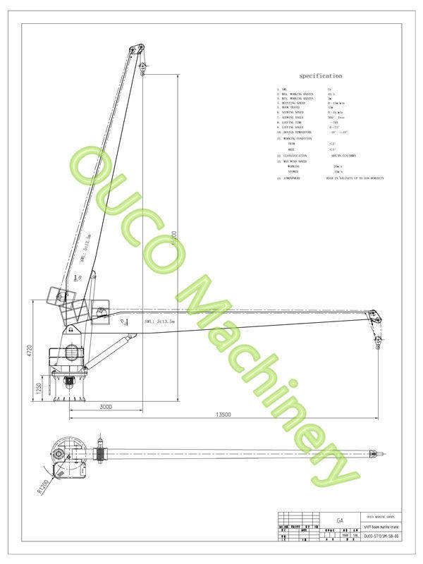 The boom type is straight, are typically used in dock, on fixed installations and in harbor conditions with its stability. OUCO Marine/Offshore Stiff boom cranes are with low cost, easy operation and high efficiency on different working conditions.