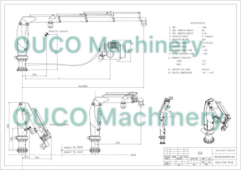 The TB series yacht marine crane/davit is designed as an electro-hydraulic driven telescopic boom/jib small crane, with electro-hydraulic power unit installed under deck, delivered as a complete unit ready for installation to yacht. The crane/davit is equipped with hydraulic operated winch, hydraulic operated luffing and and hydraulic operator extension and hydraulic operated slewing system. All cranes/davits are reliable and easy to use.